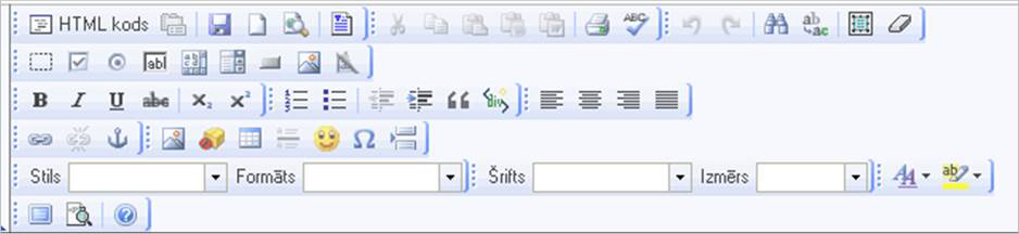 • Virs satura ievadlauka tiek attēlota rīku josla teksta noformēšanai: