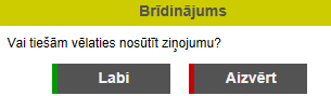 ziņojuma nosūtīšanas tiek attēlots sistēmas brīdinājuma paziņojums: