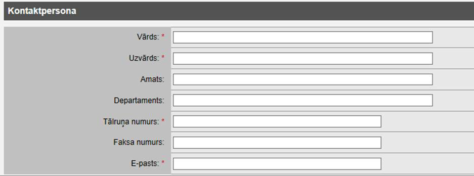 • Departaments – ievadlauks adreses kontaktpersonas departamenta vai struktūrvienības nosaukuma norādīšanai.