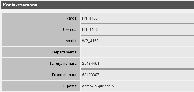 • Departaments – tiek attēlots adreses kontaktpersonas departamenta vai struktūrvienības nosaukums.
