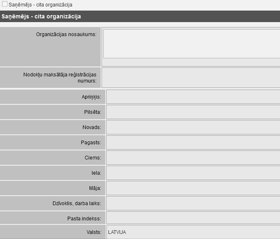 Saņēmēja – citas organizācijas Juridiskās adreses dati:
