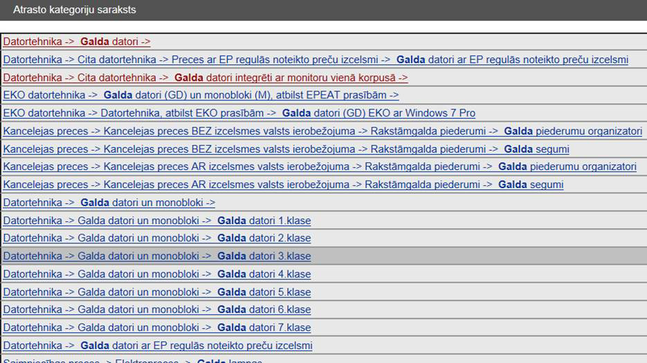 Atrasto Kategoriju un Katalogu saraksts ir pieejams visiem sistēmas lietotājiem.