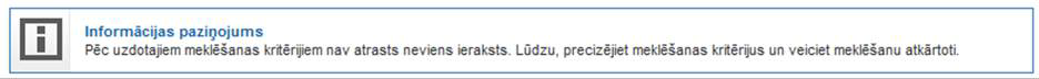meklēšanas kritērijus uzsāk meklēšanu uzklikšķinot uz spiedpogas . Ja sistēma pēc uzstādītajiem meklēšanas