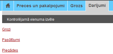 Kontrolējamā vienuma (grozi, pasūtījumi vai piegādes) izvēles sarakstu var izsaukt ‘e-pasūtījumu’ apakšsistēmā, uzklikšķinot šķirklim ‘Darījumi’, vai tikai grozu sarakstu var skatīt šķirklī ‘Grozi’.