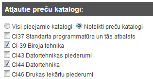 • Noteikti preču katalogi – atzīmē, ja lietotājam piešķiramas tiesības uz atsevišķiem katalogiem.