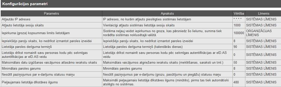 • Parametrs – organizācijai pieejamā konfigurācijas parametra nosaukums.