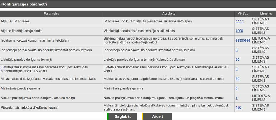 Piezīme! Rediģēšanai pieejami tikai tie konfigurācijas parametri, kuriem ir definēta rediģēšanas iespēja.