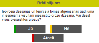 • Uzklikšķinot uz spiedpogas, tiek attēlots brīdinājuma paziņojums:
