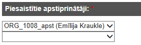 Piezīme! Ir jānorāda vismaz viens Apstiprinātājs, kas ir tās pašas organizācijas aktīvs lietotājs ar piešķirtu Apstiprinātāja lomu, t.i., tāds, kas nav ne dzēsts, ne bloķēts.