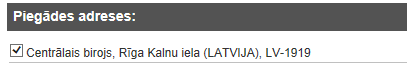 • Piegādes adrese – kā izvēles rūtiņa tiek attēlota adresei definētais nosaukums, kuram pēc komata pievienota adrese.