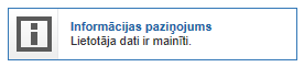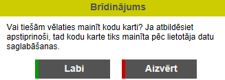 § Ja lietotāja datu rediģēšanas laikā netika veikta jaunas Kodu kartes ģenerēšana, tad pēc lietotāja datu aktualizēšanas tiek attēlots vispārīgs informatīvs paziņojums par datu saglabāšanu: