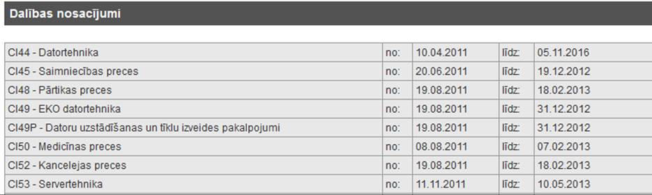 Piezīme! Sarakstā dalības nosacījuma ieraksti tiek kārtoti pēc kataloga numura augošā secībā.