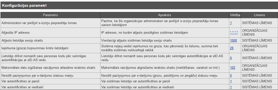 • Parametrs – tiek attēlots organizācijai pieejamā konfigurācijas parametra nosaukums.