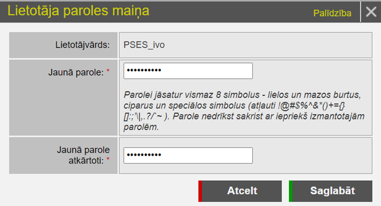 Ekrānformas bloks 16. Paroles maiņas pieprasījums