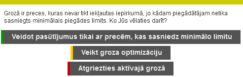 Piezīme! Lai veidotu pasūtījumu, aktīvajā grozā iekļautajām precēm ir jāsasniedz minimālais piegādes limits.