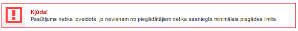 o Ja nevienai no pirkuma pieprasījuma rindām netiek sasniegs minimālais piegādes limits, tad tiek attēlots kļūdas paziņojums: