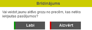 Ja veidojot pirkuma pieprasījumu aktīvā Groza aktualizācijas laikā tiek konstatētas izmaiņas, sistēma attēlo informatīvu paziņojumu par aktualizētā Groza datu caurskatīšanu.