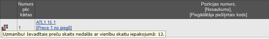 tiek attēlotas ar ikonu ‘Uzmanību! Ievadītais preču skaits