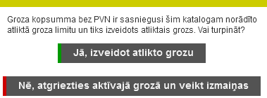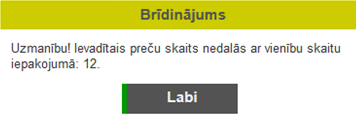 Piezīme! Brīdinājuma paziņojumā attēlo informāciju par grozā pirmo (augstāk esošo) preci, kurai vienību skaits nedalās ar preces informācijā norādīto vienību skaitu iepakojumā.