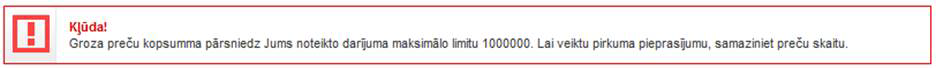 • pasūtījuma no groza kopsumma pārsniedz šim lietotājam noteikto darījumu limitu: