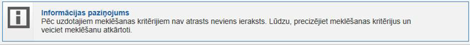 meklēšanas kritērijus uzsāk meklēšanu uzklikšķinot uz spiedpogas . Ja sistēma pēc uzstādītajiem meklēšanas