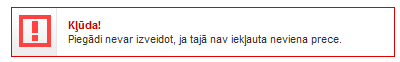§ Ja nevienai piegādes rindai norādītais ‘Šajā piegādē iekļautais skaits’ nav pozitīvs un lielāks par „0”, tad sistēma attēlo kļūdas paziņojumu: