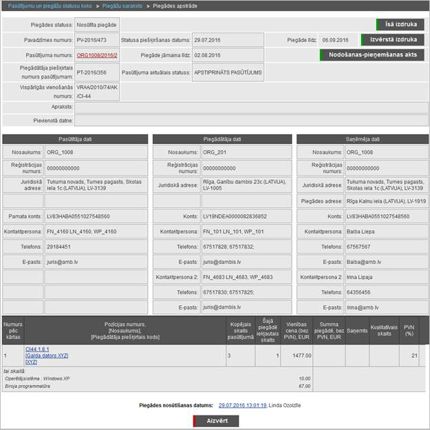 – pieņemšanas akta izdrukāšana no piegādes kontroles|topic=Nodošanas - pieņemšanas akta izdrukāšana no