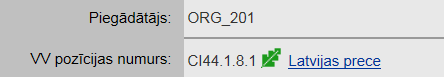 Veicot Piegādātāja VV pozīcijas apskatīšanu, Kategorijai jābūt pievienotai VV pozīcijai (skat. aprakstu VV pozīcijas pievienošana) un pievienotai Piegādātāja VV pozīcijai (skat. aprakstu Piegādātāja VV pozīcijas pievienošana).