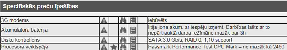 Par katru specifisko preču īpašību attēlo šādu informāciju: