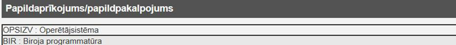 Piezīme! Datu bloks tiek attēlots tikai tad, ja preču veidam ir piesaistītas īpašības ar tipu ‘papildaprīkojums’ vai ‘papildaprīkojums ar izvēli’.