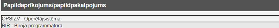 Piezīme! Datu bloks tiek attēlots tikai tad, ja preču veidam ir piesaistītas īpašības ar tipu „papildaprīkojums” vai „papildaprīkojums ar izvēli”.