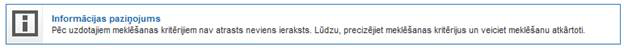 Ja pēc norādītajiem atlases kritērijiem netika atrasta neviena piegāde, tad sistēma attēlo paziņojumu: