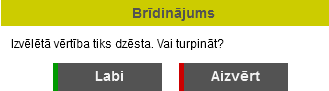 • Sistēma par izvēlētā pirkuma pieprasījuma izbeigšanu attēlo brīdinājuma paziņojumu: