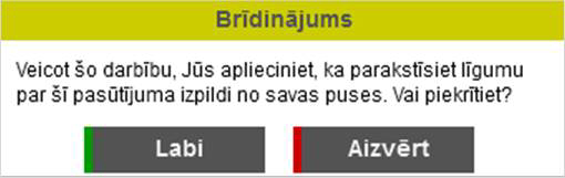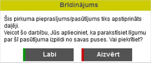 brīdinājuma paziņojumu (uzklikšķinot spiedpogai ), tad pirkuma pieprasījums/pasūtījums tiek