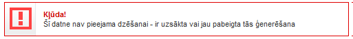 § Sistēma atlasa dzēšanai tās datnes, kuru ģenerēšana ir beigusies (datnes ir statusā "Nosūtīts uz e-pastu"), un no šīm datnēm atlasa tās, kuras šajā statusā ir vecākas par 3 dienām, rēķinot arī pulksteņa laiku. Sistēma dzēš šīs atlasītās datnes;