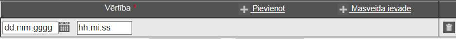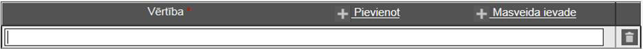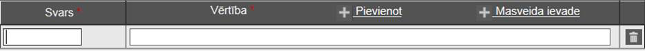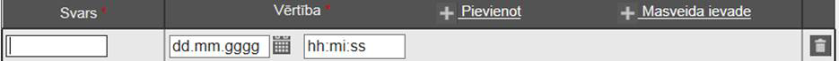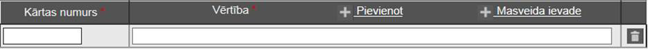 ‘Vērtība’ un ‘Kārtas numurs’ rindai tiek attēlota dzēšanas ikona ‘Dzēst’, uz kuras uzklikšķinot, tiek
