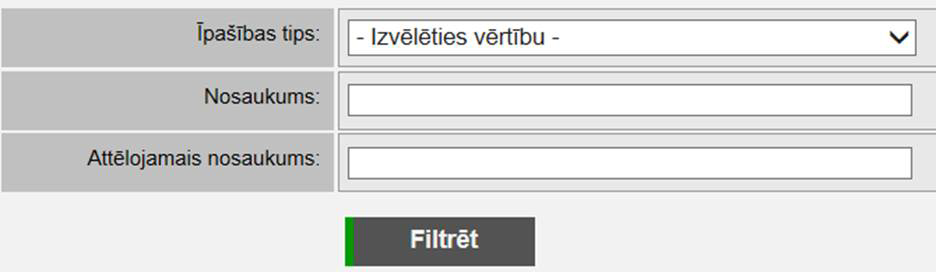 Piezīme! Ja lietotājs veic saraksta filtrēšanu pēc preču īpašības nosaukuma vai attēlojamā nosaukuma, lietotājam ir jāievada vismaz 3 simboli, neskaitot tukšuma zīmes no abiem galiem.