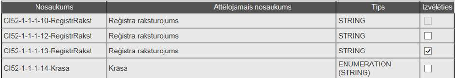 Piezīme! Fiksētajām īpašībām ‘Komentāri’ un ‘Apraksts’ pazīme ir uzstādīta kā aplama un tās vērtība nav maināma.