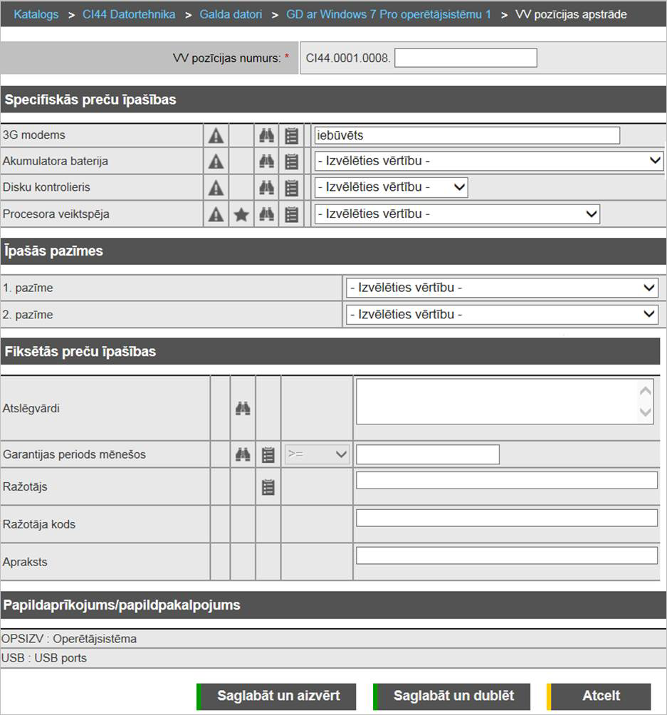 Piezīme! Veidojot, vai dublējot katru nākamo jauno VV pozīciju, tās numura ievadlaukā sistēma automātiski piešķir kategorijas VV pozīcijas numuru, taču, ja raksta manuāli būtu ieteicams to ierakstīt pēc noklusējuma pašreizējā kategorijā lielākais pozīcijas numurs + 1.