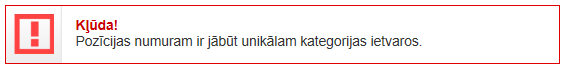 Ja VV pozīcijas numurs sakrīt ar sarakstā jau esošu numuru, tad sistēma pie VV pozīcijas datu saglabāšanas attēlo kļūdas paziņojumu: