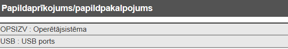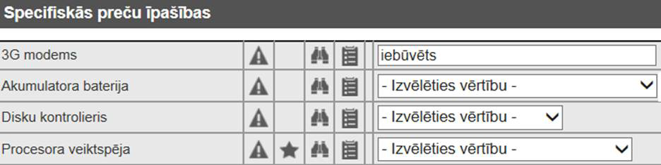 Piezīme! Datu bloks tiek attēlots tikai tad, ja preču veidam ir piesaistītas īpašības ar tipu „papildaprīkojums” vai „papildaprīkojums ar izvēli”.