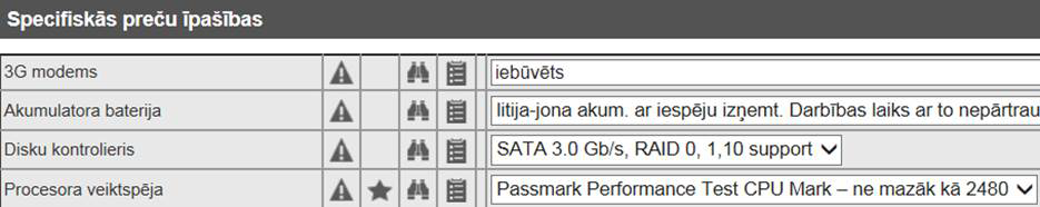 Piezīme! Datu bloks tiek attēlots tikai tad, ja preču veidam ir piesaistītas īpašības ar tipu „papildaprīkojums” vai „papildaprīkojums ar izvēli”.