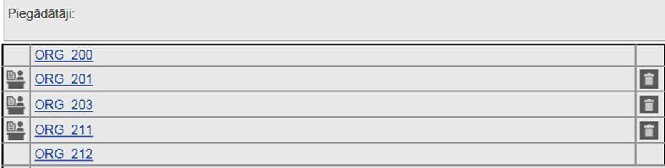 • Nosaukums – piegādātāja nosaukums, kas tiek attēlots kā hipersaite. Uzklikšķinot uz hipersaites: