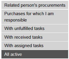 Note! Advanced search isn’t available when related persons’ procurements are selected.