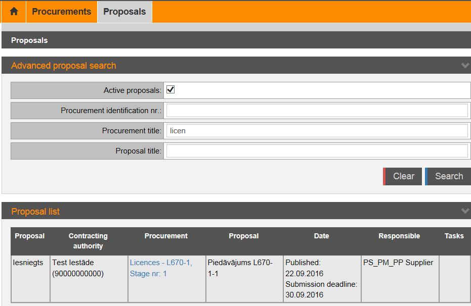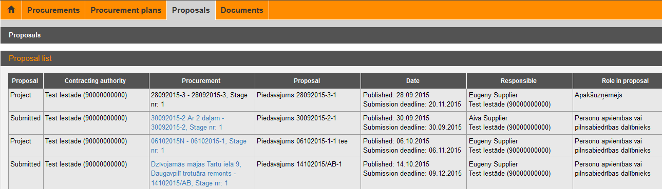 Proposals of one procurement may be found also in sections „Procurements – Proposals”.