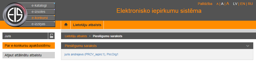Piezīme! Lai sniegtu atbalstu, lietotājam ir jābūt piešķirtai lomai “Lietotāju atbalsts”.