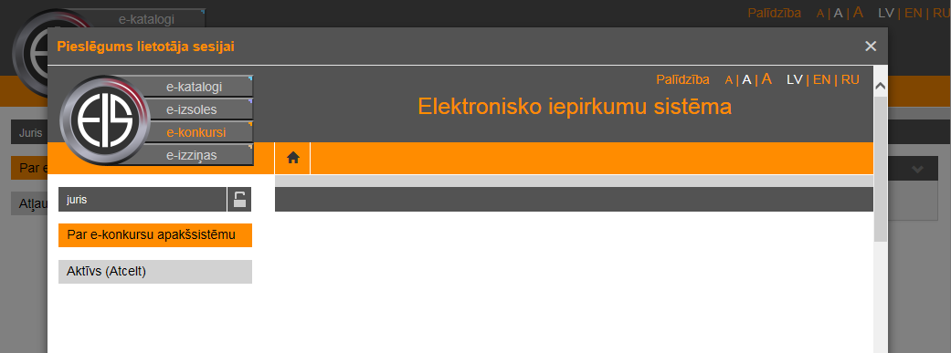 Atbalsta sniegšana ir pieejama no izvēlnes