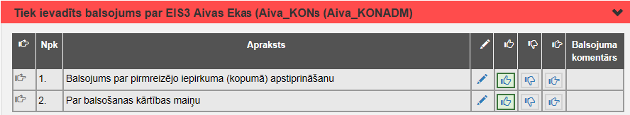 1. Sēdes pamatdatu formā, uzklikšķina pogai Ievadīt balsojumu.