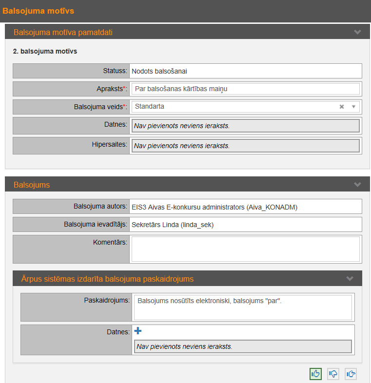 balsojuma motīva forma, kurā ievada balsojuma informāciju: