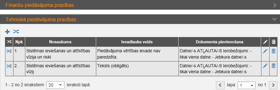 Sistēmas daļās, kur informācija strukturēta sarakstos, ja